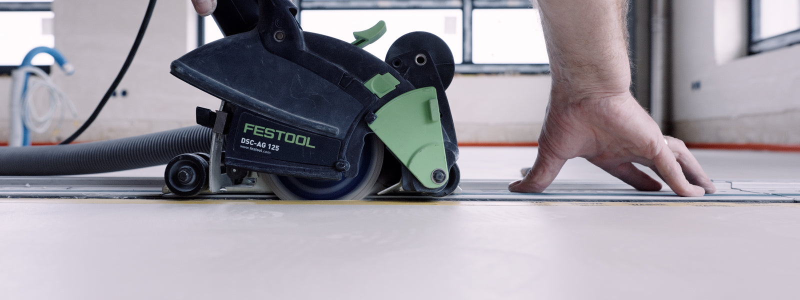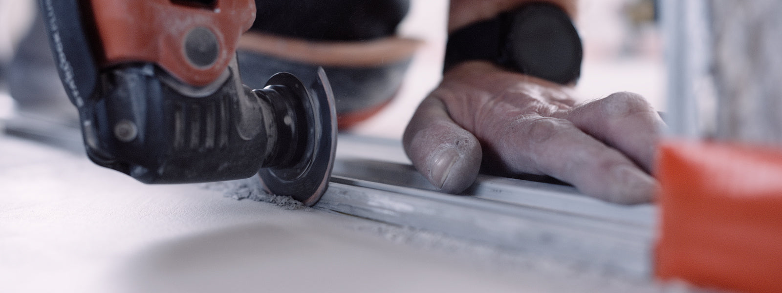 Cutting expansion joints in a microcement floor using a multitool