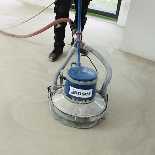 After about 4 hours, when the material has completely set and is dry, sand the floor with a single-disc sander (a so-called polisher) with 60-120 grit sandpaper (depending on the desired effect). In hard-to-reach places (corners, along walls, etc.), you can use hand-held eccentric or oscillating sanders.
