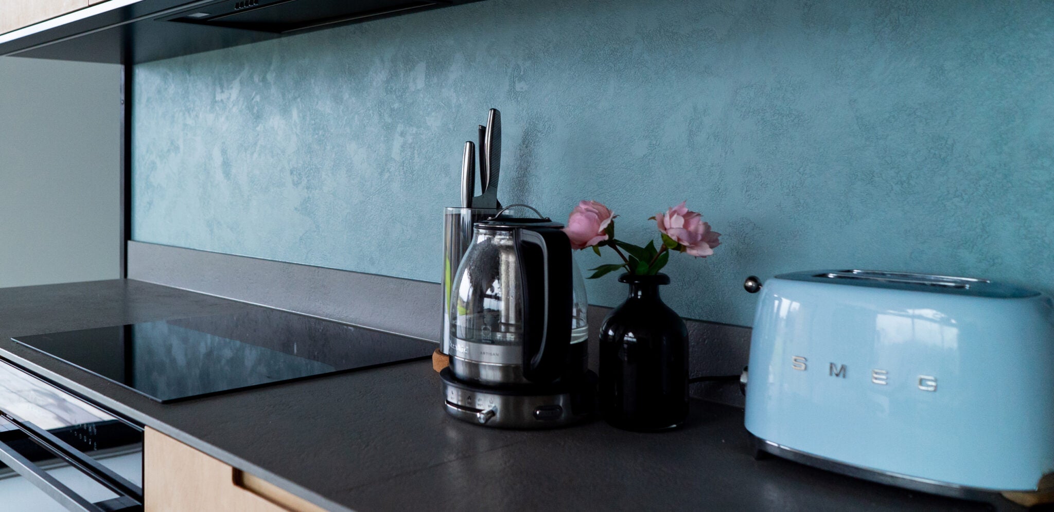 Blue microcement in the kitchen by: Projekt Mikrocement