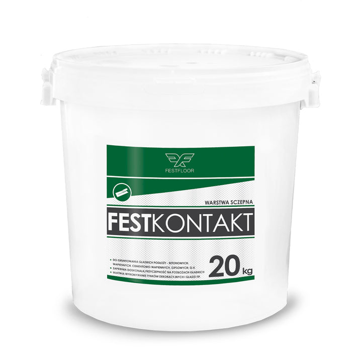 FEST Kontakt est un pont d'adhérence prêt à l'emploi avec ajout d'agrégat de quartz. Il offre une excellente adhérence sur des supports lisses et difficiles tels que le béton, les plaques de plâtre et les carreaux de céramique. Il est utilisé comme première couche de renforcement avant l'application de béton ciré, d'enduits décoratifs et d'autres composés de finition sur les murs.
