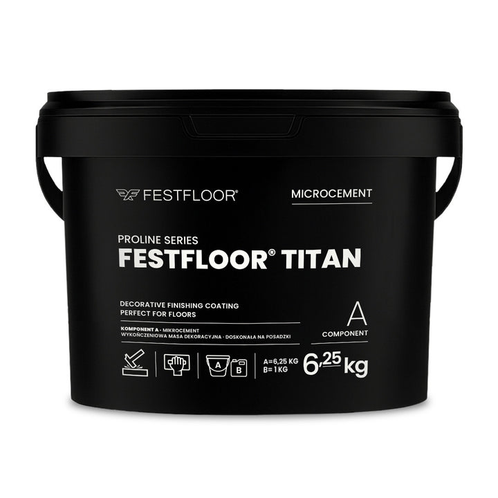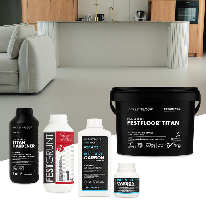 Festfloor Titan est un microciment à dureté renforcée, conçu pour les surfaces exigeantes – en particulier les sols et les escaliers – où la résistance, la durabilité et la solidité de la finition sont essentielles. Le système est basé sur une résine époxy, ce qui le distingue des autres microciments disponibles sur le marché. Ce kit de microciment s'adresse à ceux qui souhaitent réaliser un sol en microciment eux-mêmes ou avec l'aide d'un professionnel, sans avoir à rassembler tous les composants séparément.