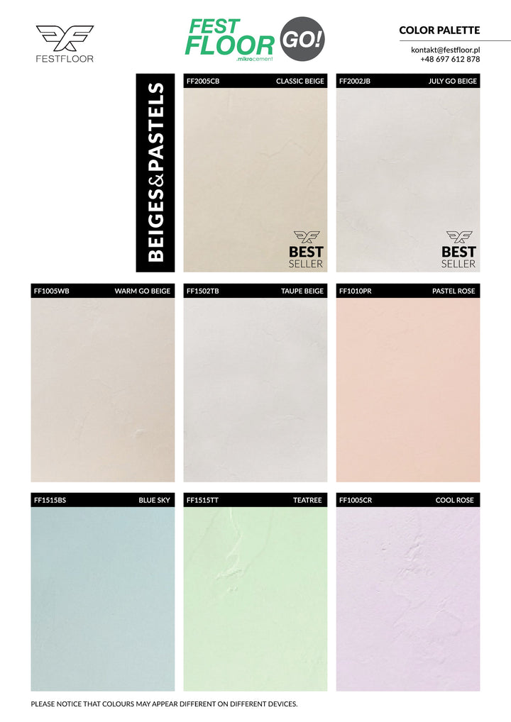 LARGE PALETTE DE COULEURS Festfloor Go! est disponible dans une large gamme de couleurs. |